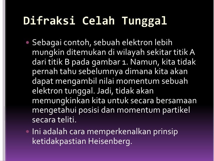Penulis akan bercerita sebuah fakta sederhana yang menjadi salah satu fondasi dari lahirnya sebuah revolusi di fisika yang dibawa oleh mekanika kuantum ( quantum mechanics ). Prinsip ketidakpastian heisenberg merupakan salah satu konsep dasar dari quantum fisika, dan merupakan dasar untuk realisasi awal ketidakpastian mendasar dalam kemampuan suatu percobaan untuk mengukur lebih dari satu variabel kuantum pada suatu waktu. Latihan 2.8 ketidakpastian posisi elektron. Dalam papernya, heisenberg memperkenalkan ide bahwa adalah tidak mungkin menentukan secara simultan dengan presisi yang luar biasa untuk posisi dan momentum suatu partikel. <br />jadi, jika nilai posisi elektron diketahui dengan tingkat akurasi yang tinggi, maka nilai momentum elektron akan tidak pasti, dan sebaliknya.<br /> 5. Ketidakpastian heisenberg dan dilema elektron: Δl = (δx x + δy y)l δl = (0, 1 2 + 0, 5 10) × 20 δl = 0, 1 × 20 δl = 2. Sampai fajar mekanika kuantum, itu dianggap sebagai fakta bahwa semua variabel suatu objek dapat diketahui presisi tepat secara bersamaan untuk saat tertentu. Prinsip ketidakpastian heisenberg pada tahun 1927, werner heisenberg mengemukakan bahwa posisi atau lokasi suatu elektron dalam atom tidak dapat ditentukan dengan pasti. Prinsip ketidakpastian heisenberg memperkenalkan suatu hubungan timbal balik antara posisi dan momentum. Mahasiswa dapat menerapkan konsep prinsip ketidakpastian heisenberg dan menghitung ketidakpastian dari pengukuran suatu besaran fisis. Jadi luas persegi panjang dapat dituliskan sebagai l = (20 ± 2)cm2. Fakta ini terkenal dengan sebutan ketidakpastian heisenberg, yang pertama kali diformulasikan.