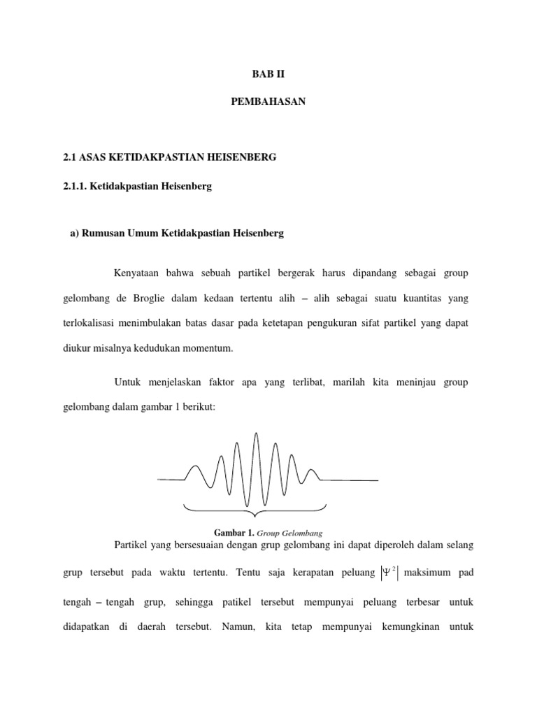 Asas Ketidakpastian Heisenberg Akh from lh4.googleusercontent.com Mahasiswa dapat menerapkan konsep prinsip ketidakpastian heisenberg dan menghitung ketidakpastian dari pengukuran suatu besaran fisis. Perkirakan ketidakpastian kecepatan pada kondisi ini. Λ = h/p rumus panjang gelombang de broglie, dimana h adalah tetapan planck yang memiliki nilai yang sangat kecil yaitu maka hanya partikel yang berukuran atom/inti atom yang perilaku gelombangnya dapat teramati. Hubungan ini disebut dengan prinsip ketidakpastian heisenberg. Hipotesa de broglie menyatakan bagi semua partikel yang bergerak dengan momentum p, terkait dengan suatu gelombang λ. Jadi kita sampai pada prinsip ketidakpastian : Therefore, it is possible that there would be predictability of the subatomic particles behavior and characteristics to a recording device capable of very high speed tracking we may take this a step further to the continuum limit, where the wave function is an integral over all possible modes. Jadi luas persegi panjang dapat dituliskan sebagai l = (20 ± 2)cm2.